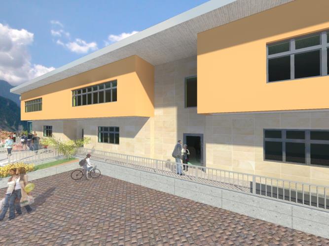 ![]() MARONE -BS- POLO UNICO SCOLASTICO DI VIA BORGONUOVO la scuola è l'accorpamento di due scuole: la elementare e la media, al fine del risparmio delle spese di gestione, di adeguamento dell'edificio scolastico esistente alle nuove esigenze scolastiche e formative e ad uno sfruttamento più razionale della rete scolastica. Il progetto prevede la ristrutturazione degli spazi esistenti, previa demolizone di un corpo di fabbrica destinato originariamente a Direzione Didattica, ora spostata in atra sede, ed ampliare l'edificio inglobando il corpo dei vecchi spogliatoi, molto usurati e non più utilizzati. Attualmete la scola elementare è costituita da 10 classi(2cicli), la media costituitada 6 classi (2 cicli) Il corpo esistente è costituito da 14 al e vrrà destinato a sucola eleetare. Il progetto matiene gli allineamenti del'edificato esistente, con l'angolo esterno alleggerito dal corpo scale rotondo, ed esprime un linguaggio architettonico sobrio e lineae che si armonizza col contesto. Il progetto consente una miglior distribuzone interna delle funzioni, comprese l'aula mgna e la sezione di sostegno agli utenti disabili (piano terra) e utlizzabili dalla comunità.