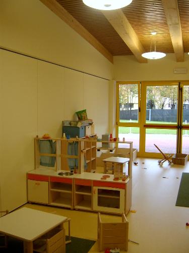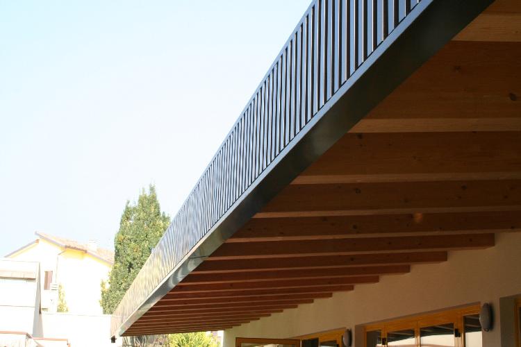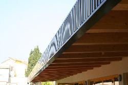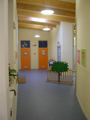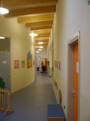 Un ampio porticato ripara dal soleggiamento estivo e consente l’attività didattica all’aperto, pur consentendo l'ingresso di benefiche radiazioni solari nei mesi invernali.