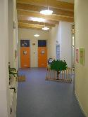 L'accesso alla scuola avviene dal corpo di connessione, dal quale si accede all'atrio di ingresso.