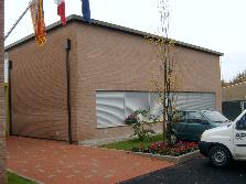 Il corpo delle attività è costituito da due parallelepipedi rivestiti con mattoni facciavista tra i quali è distesa una grande falda inclinata.