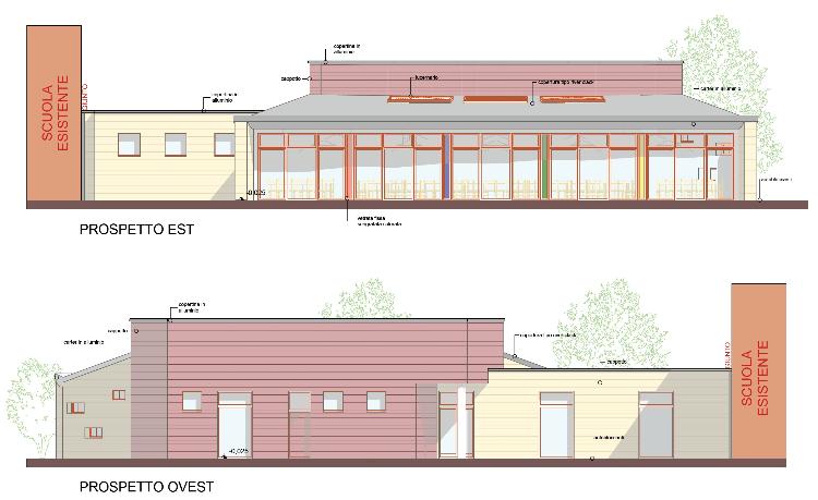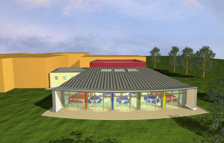 2. ridurre il numero di turni di refezione da 3 a 2 costruendo una nuova mensa con spazi di servizio connessa alla scuola esistente. Pertanto nel corpo esistente verranno inseriti due laboratori nello spazio che ora è occupato dalla mensa e recuperate altre aule di sostegno all’interno degli spazi di servizio.
