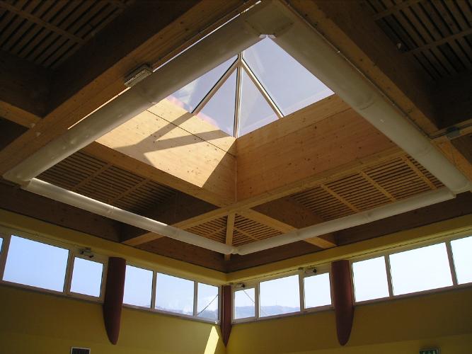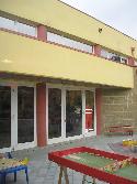 ![]() CISANO BERGAMASCO - BG -NUOVA SCUOLA MATERNA Il progetto della nuova scuola materna si articola in cinque sezioni per un totale di 140 bambini che possono usufruire di un locale per le attività di movimento oltre che di un locale mensa servito da una cucina interna. Le diverse funzioni presenti nell’edificio sono esplicate attraverso una diversa caratterizzazione degli spazi che li contengono. La volontà dell’Amministrazione di integrare il nuovo edificio al quartiere residenziale, e la scelta progettuale di definire gli spazi per forme elementari ed immediatamente riconoscibili dal bambino, ha suggerito l’utilizzo di forme e materiali tipici della pianura lombarda: il portico, il tetto spiovente, la capriata in legno, l’intonaco civile. L’edificio è costituito da un corpo centrale di maggiore altezza di forma rettangolare, che contiene lo spazio comune di movimento, l’intero spazio è coperto con una struttura in legno a vista. Il complesso è costituito da volumi compatti ma armoniosi nelle proporzioni, con la dichiarata ambizione di rendere gradito l’ingresso nella scuola.
