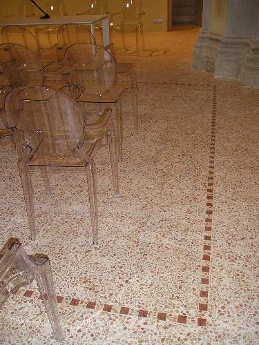 Per quanto riguarda gli impianti si è realizzato un riscaldamento a pavimento ed un impianto di illuminazione puntiforme svincolato dalla muratura esistente. la pavimentazione è stata eseguita in Battuto alla Veneziana.