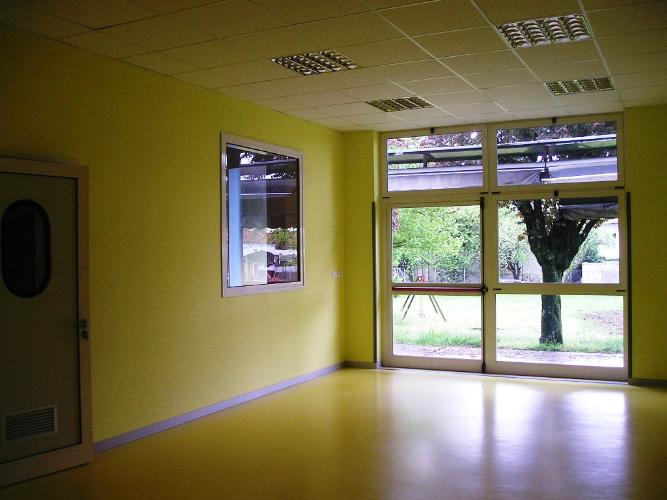 - nuovi pavimenti in linoleum per le aule e spazi comuni e gres porcellanato per bagni e servizi