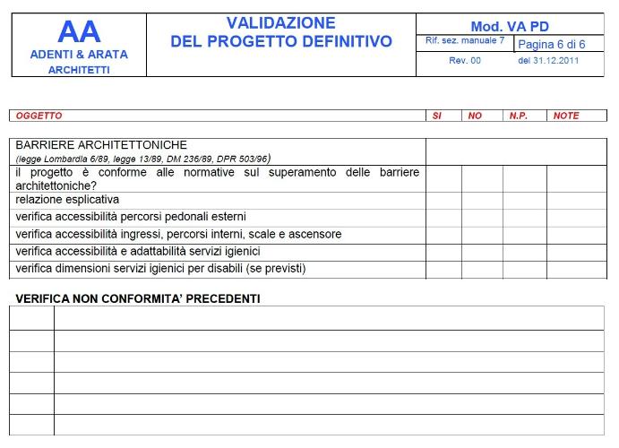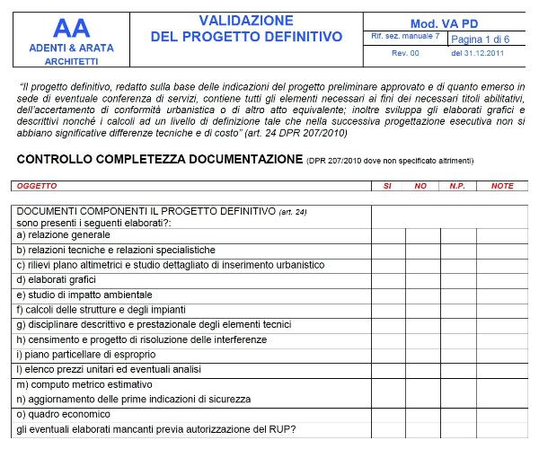 Schede di Validazione Progetto Definitivo