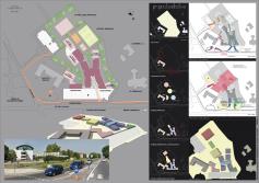 L’idea alla base del progetto prevede l’aggregazione degli spazi didattici intorno agli spazi comuni (dove si trova l’ingresso alla scuola) in modo da ottimizzare i percorsi interni di collegamento tra le varie funzioni.