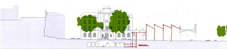 Il progetto propone la realizzazione di un padiglione vetrato in corrispondenza dell’incrocio tra le due prospettive principali della Città Bassa di Bergamo, da adibire a eventi culturali e/o commerciali, sufficientemente trasparente in modo da non interrompere i coni visuali.