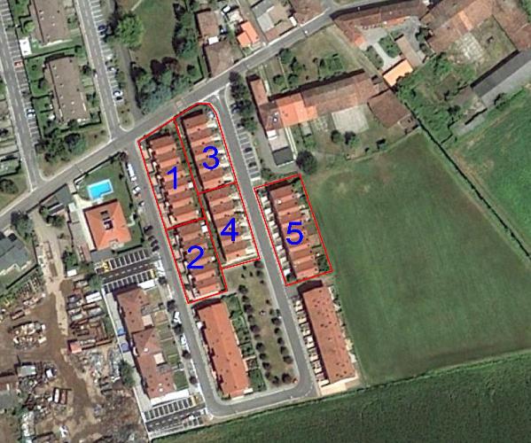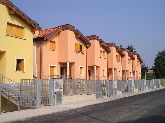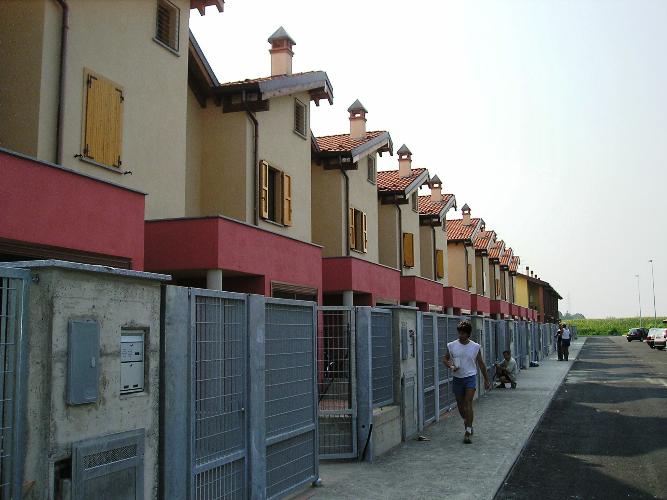 Sono 28 unità suddivise in cinque lotti con tre diverse tipologie; è un intervento edilizio con esplicite caratteristiche di sostenibilità ambientale, conseguito tramite la selezione dei materiali da costruzione provenienti da fonti rinnovabili, prodotti con ridotto consumo di energia e riciclabili: muratura portante in termolaterizio, solai in legno, tetto in coppi, coibenti in sughero e perlite espansa, intonaco di calce, serramenti in legno, tinteggiature a calce; l’impianto di riscaldamento integra la caldaia con il termocamino e i pannelli solari; le coperture hanno orientamento a Sud per la migliore efficienza dei pannelli.