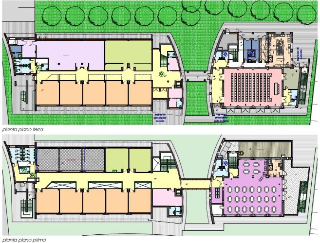 Il presente Progetto prevede di sviluppare la Nuova Scuola Elementare su due livelli. Con il 2°lotto viene completato l'impianto distributivo mediante mensa/office al piano primo e cucina e servizi, aula magna al piano terra con ingresso indipendente. I due corpi, del 1° e 2° lotto, sono collegati mediante passaggio aereo di collegamento al piano prmo. 1° lotto realizzato 2° lotto esecutivo approvato