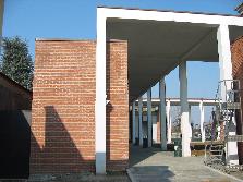 - l’uso di forme archetipe della cultura occidentale, scelte per il loro forte significato evocativo: il quadrato e il cerchio, il chiostro e la cappella;
