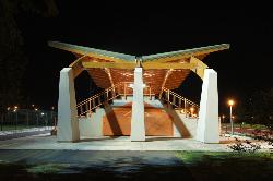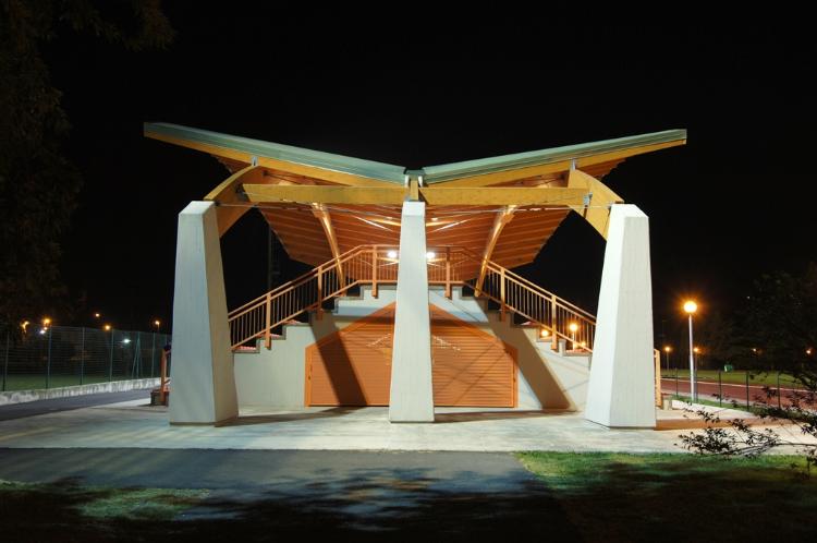 L’oggetto dell’intervento riguarda il rifacimento delle due tribune del Centro Sportivo esistente. Considerata la particolarità del sito si è progettata una struttura con materiali e forme atte a sottolinearne le caratteristiche.