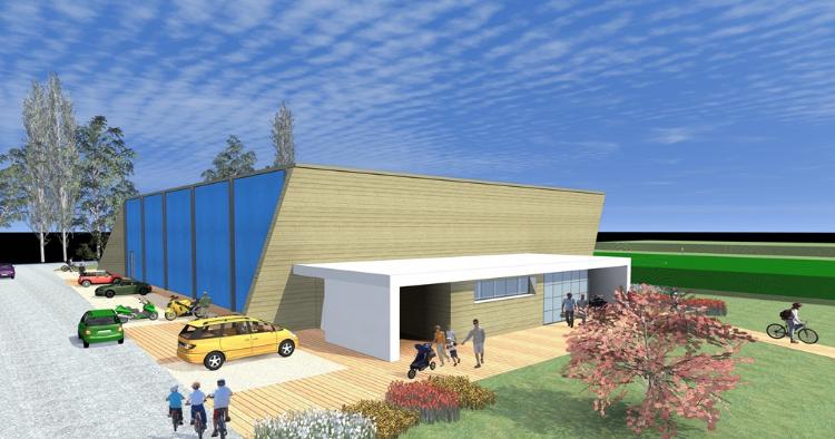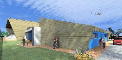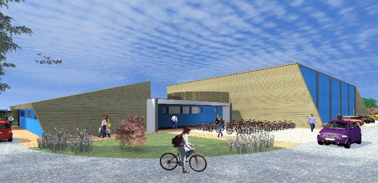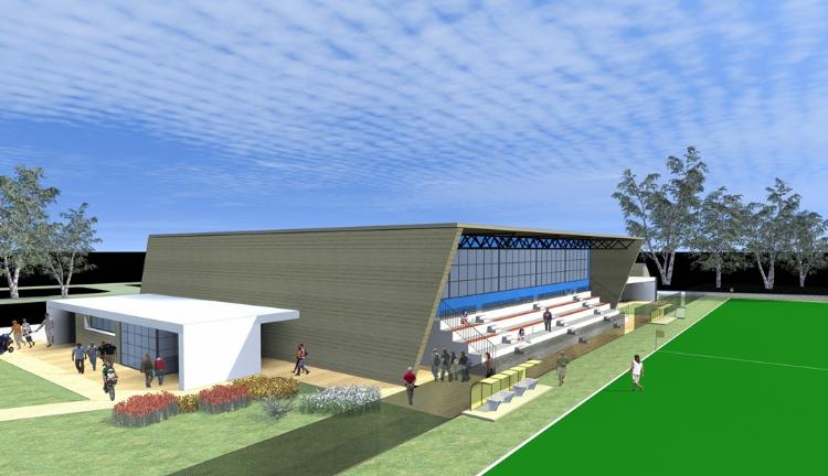 Il nuovo centro sportivo è costituito da 3 blocchi distinti: la palestra, il corpo spogliatoi e la biglietteria.