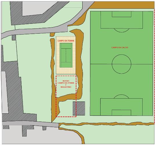L'intervento è realizzato su di un’area F destinata ad attrezzature pubbliche posta in centro storico. In tale area è già presente il campo di calcio. Si tratta di un area all'interno della quale sono presenti differenti livelli, a causa di una ripa.
