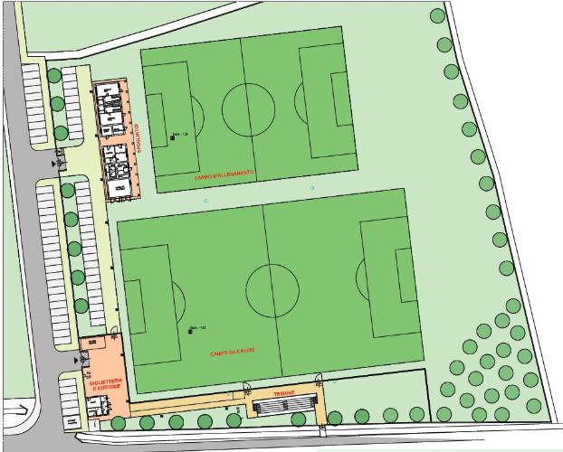Il progetto ha previsto la realizzazione di un nuovo centro sportivo comunale composto da: campo da calcio, corpo spogliatoi, corpo biglietteria e tribune per gli spettatori.