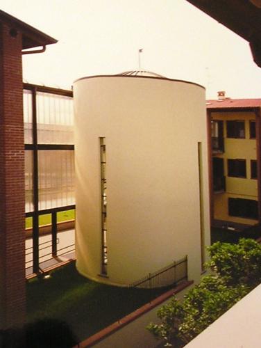 Entro il tessuto storico del paese, è stato riproposta una tipologia a corte costituita da due corpi di fabbrica, che contengono 18 unità immobiliari, un solo corpo scala/ascensore che richiama le forme dei silos agricoli, realizzati con i materiali della tradizione padana, e un elemento di collegamento in ferro e vetro.